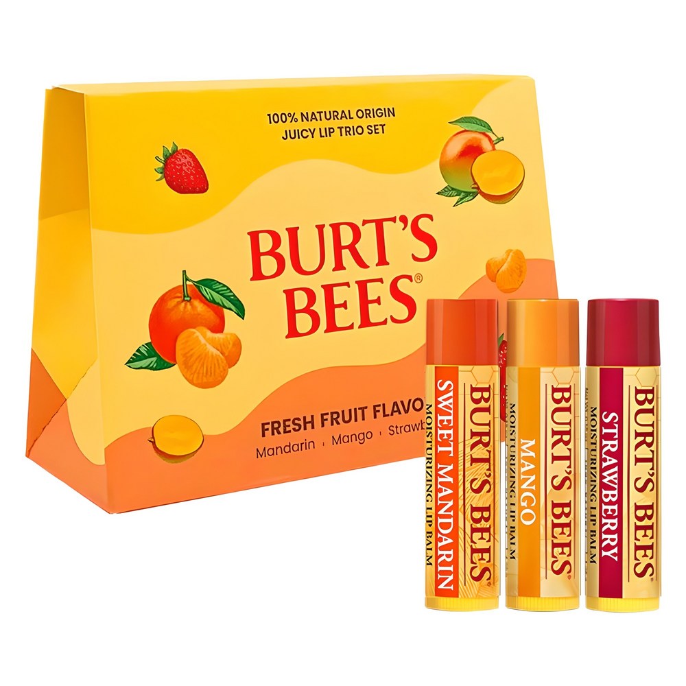BURT'S BEES Juicy Lip Balm Trio Set, Sweet Mandarin + Mango + Strawberry, 1 Each