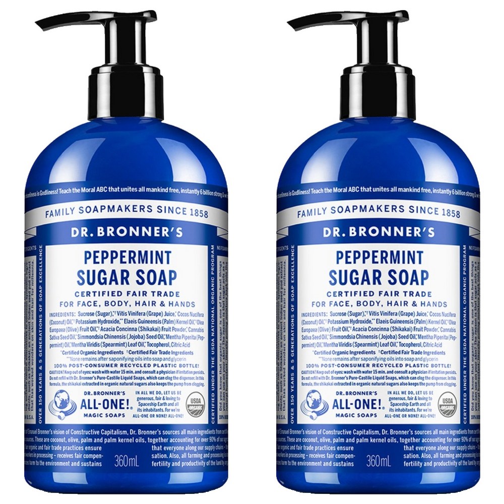 DR. BRONNER'S Peppermint Pure-Castile Soap, 360ml, 2 Pack