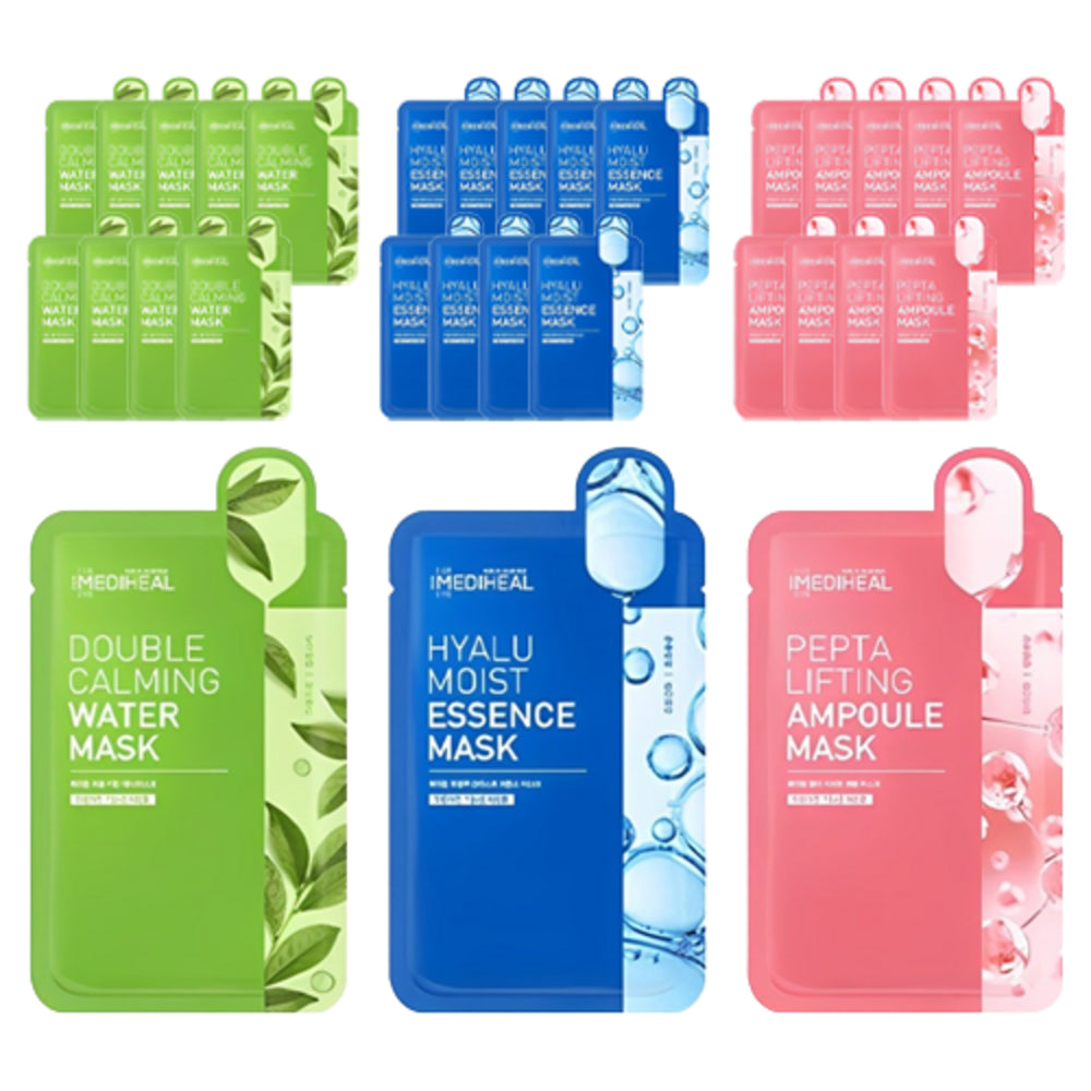 MEDIHEAL Double Cica Waterfull Mask + Hyal Moisture Essence Mask + Pedi Lifting Ampoule Mask, 2 Packs