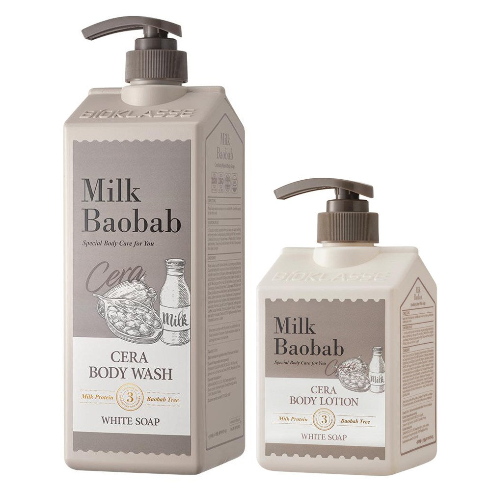 MILKBAOBAB Ceramide Body Wash White Soap 1200ml + Ceramide Body Lotion White Soap 600ml, 1 Set
