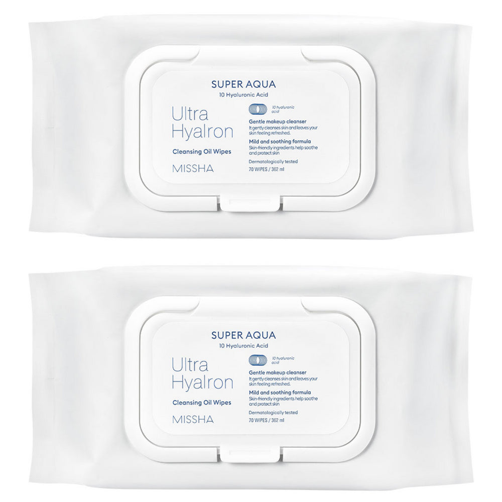 MISSHA Super Aqua Ultra Hyalon Cleansing Oil Tissue Large Size, 70 Count, 2 Pack