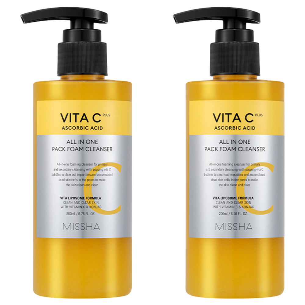 MISSHA Vita C Plus All-in-One Pack Foam Cleanser, 200ml, 2 Count